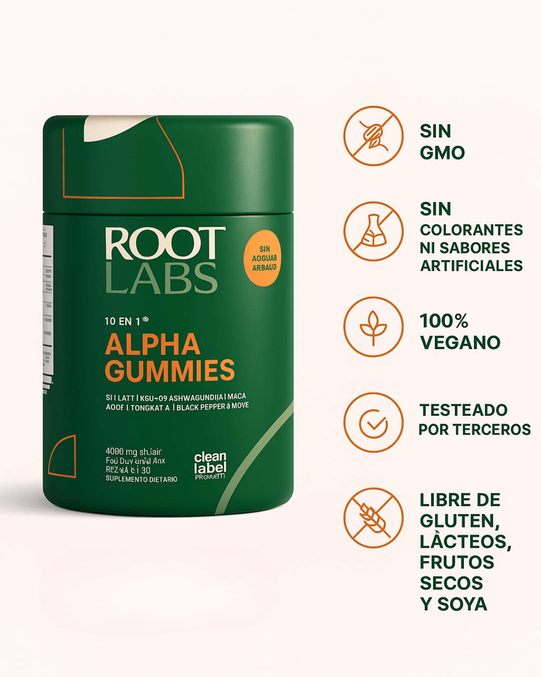 Cada gomita libera adaptógenos y minerales que estimulan la producción natural de testosterona y equilibran el cortisol (la hormona del estrés).