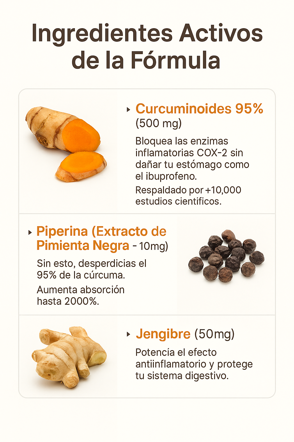 Ingredientes naturales, sin rellenos. Cada lote cumple con controles de calidad estrictos.
