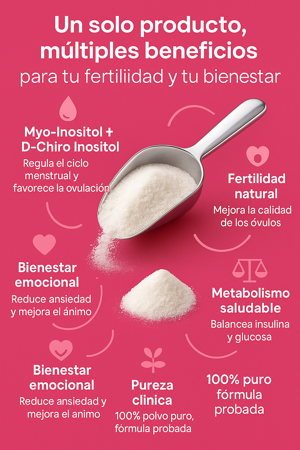 Sí, claro. El Inositol está precisamente formulado para ese momento. Ayuda a regular la ovulación, mejorar la calidad de los óvulos y equilibrar las hormonas, lo que puede aumentar las posibilidades de embarazo natural. No interfiere con otros suplementos o tratamientos que estés usando, pero siempre puedes contárselo a tu ginecóloga para mayor tranquilidad.